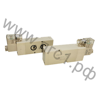 Управление: Электропневматическое, осуществляется при помощи электромагнитных катушек. Катушки имеют напряжения питания 12 VAC, 12 VDC, 24 VAC, 24 VDC, 110 VAC, 220 VAC. В зависимости от модели, распределители имеют одностороннее или двухстороннее управление.