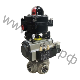 ШК-ПГС215304L(T)-PBST052D Трехходовой неполнопроходной резьбовой шаровой кран из нержавеющей стали с пневмоприводом одностороннего действия ШК-ПГС215304L(T)-PBST052D Дн 12 (1/2")