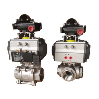 ШК-ПГС250304L (T)-PBT063D Трехходовой неполнопроходной резьбовой шаровой кран из нержавеющей стали с пневмоприводом ШК-ПГС250304L (T)-PBT063D Дн 38 (2")