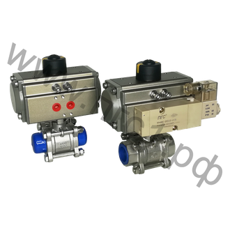 Кран шаровой, трехсоставной, разборный на стяжках из нержавеющей стали с пневмоприводом одностороннего действия ШК-ПГС350304-PBST075D (Дн50) 2"