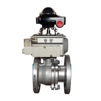 Шаровой кран из нержавеющей стали AISI304 (CF8) фланцевый полнопроходной с пневмоприводом одностороннего действия Дн40 (1 1/2")